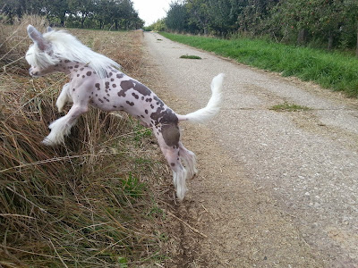 På "utvecklingsfronten" står nu bättre hundmöten och bättre "koppelföring". Sid och Leo kan jaga upp varandra inför vissa (inte alla) hundmöten. Jag måste få tips och råd på hur jag tidigt kan avleda deras uppmärksamhet. När Leo blir upphetsad kan han dessutom "hänga sig" i kopplet för att komma fram fortare. Jag har fått tipset att bara stanna, vänta på att kopplet slaknar och sedan gå vidare. Och visst, jag ser en skillnad, men det går långsamt. Dessutom känner jag ibland att mitt (och Sids) tålamod tryter för det är inte alltid man har tid att stanna och invänta slakt koppel 50 gånger på 100 meter...